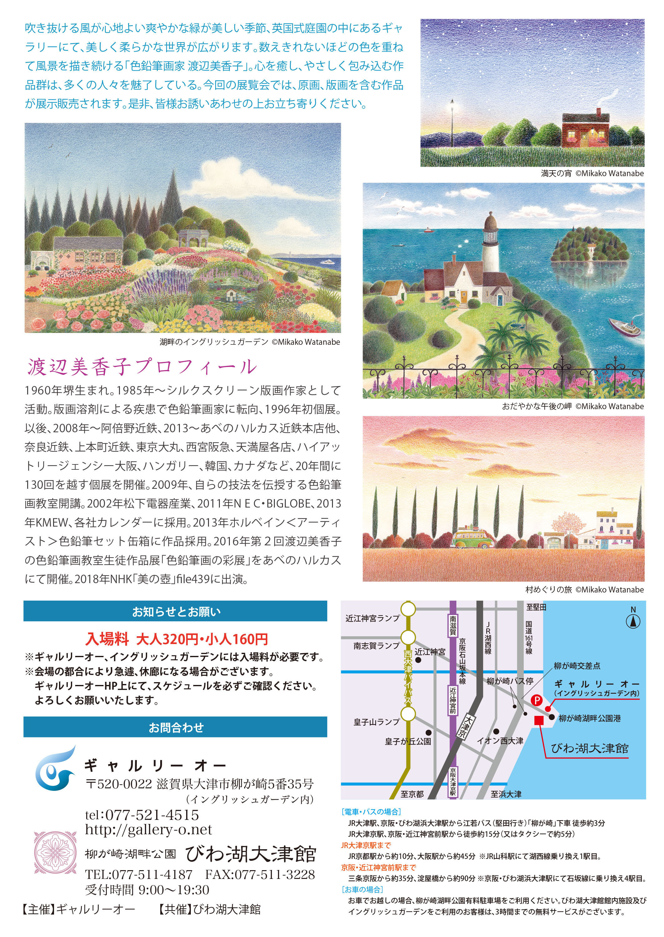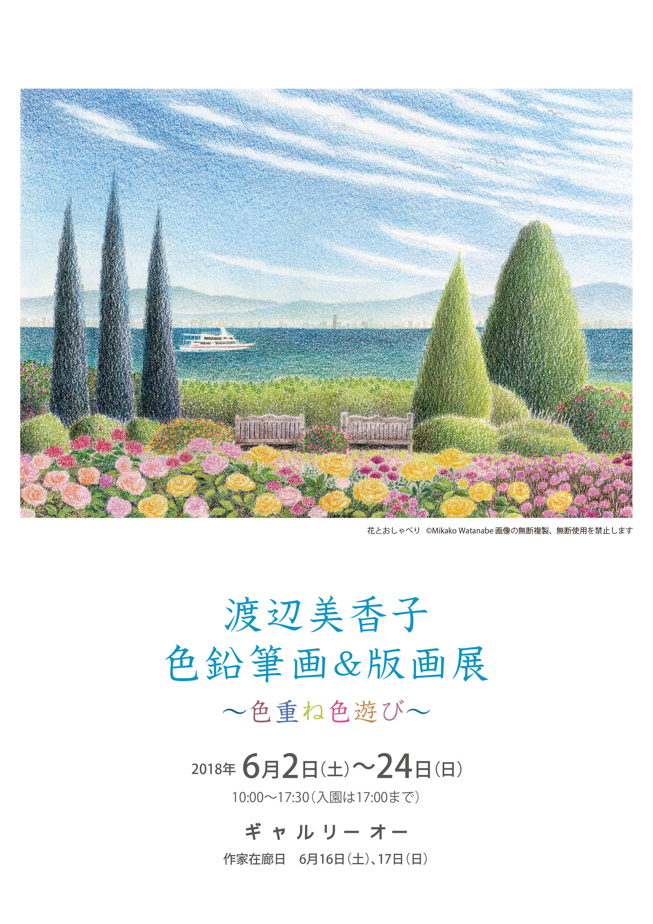 吹き抜ける風が心地よい爽やかな緑が美しい季節 、英国式庭園の中にあるギャラリーにて 、美しく柔らかな世界が広がります。数えきれないほどの色を重ねて、色を重ねて風景を描き続ける「色鉛筆画家 渡辺美香子」。心を癒し、やさしく包み込む作品群は、多くの人々を魅了している。