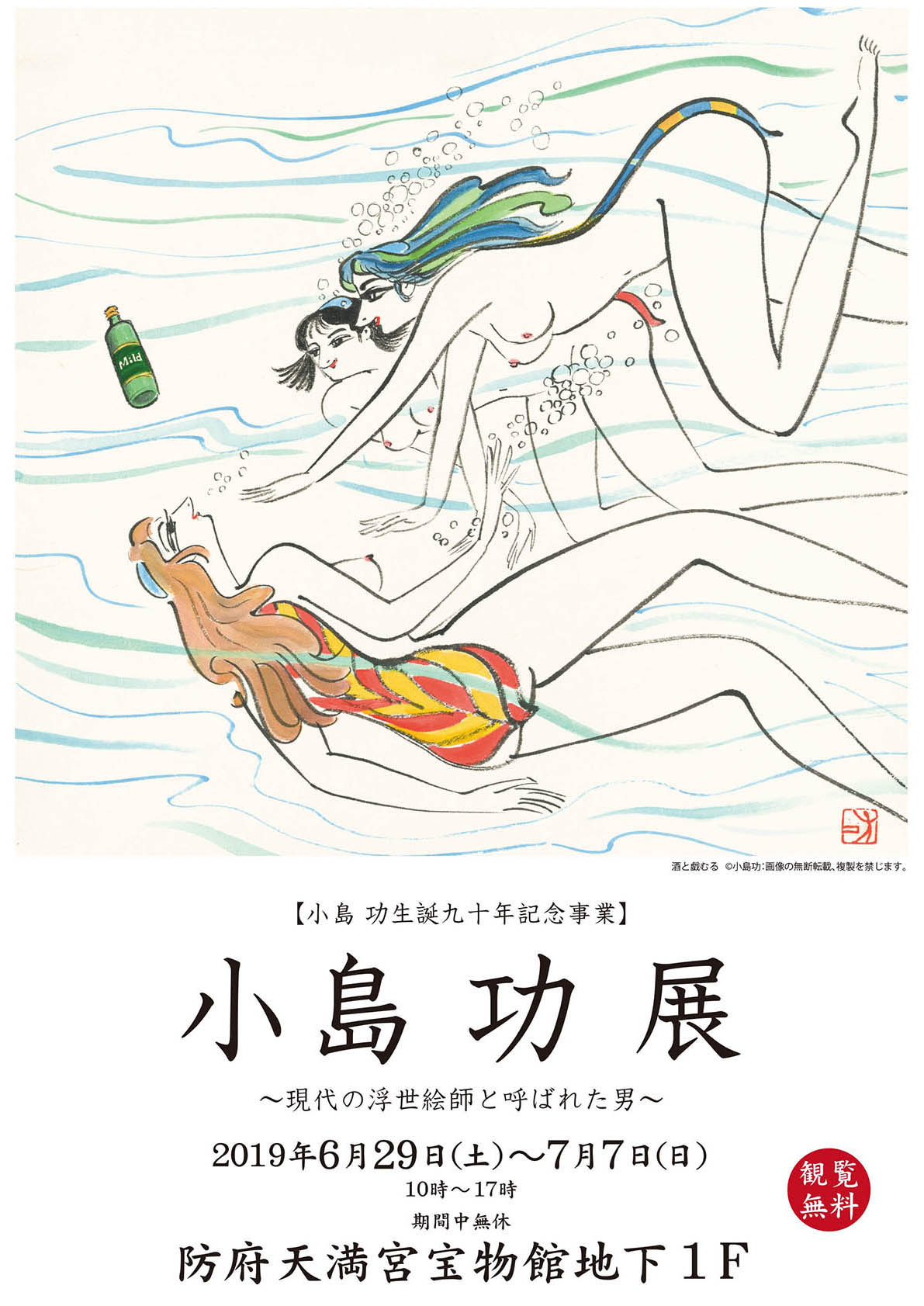 今回の展覧会では、小島功全盛期時代の作品を原画、木版画、ジークレー版画を含めて展示、販売致します。