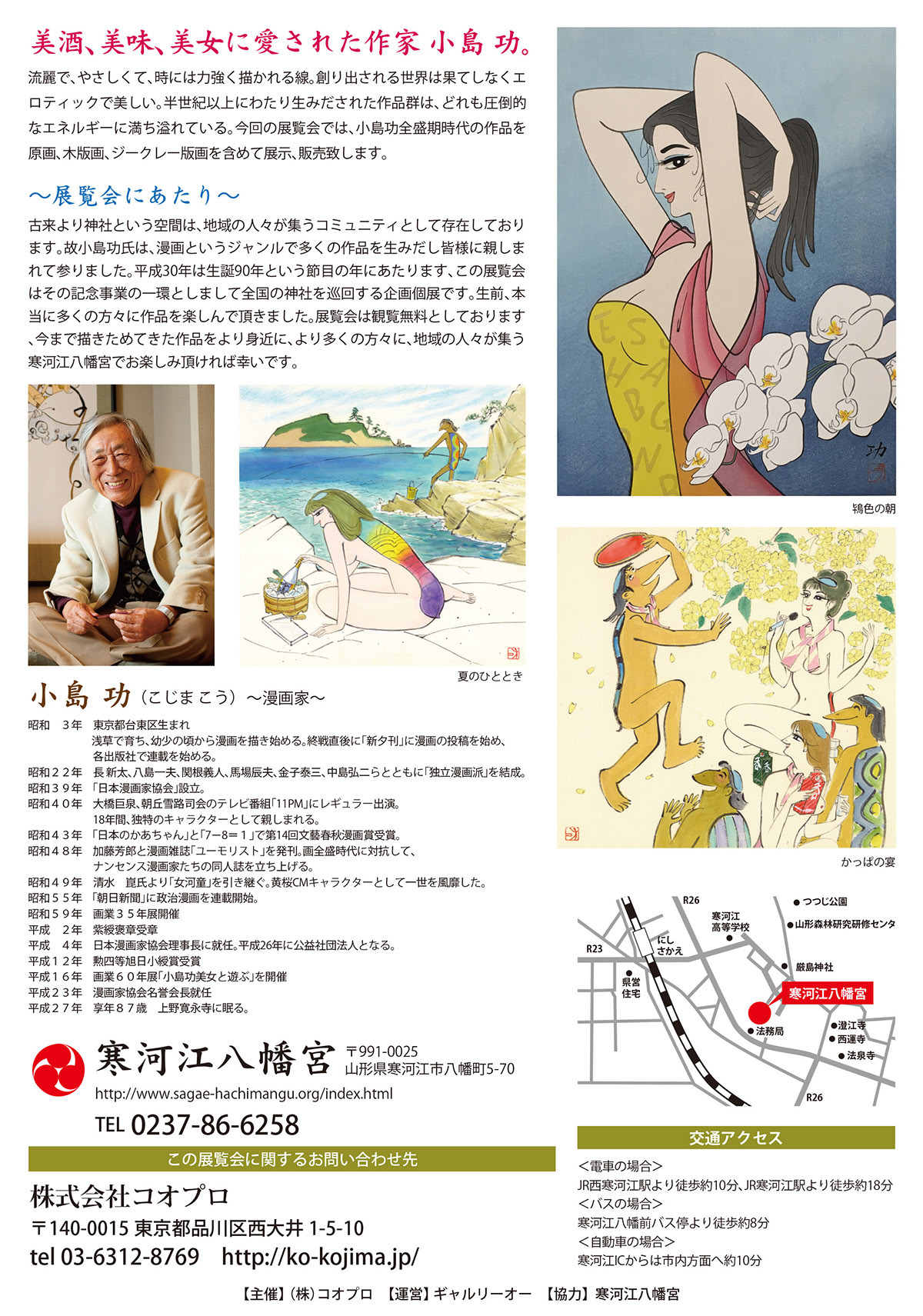 今回の展覧会では、小島功全盛期時代の作品を原画、木版画、ジークレー版画を含めて展示、販売致します。