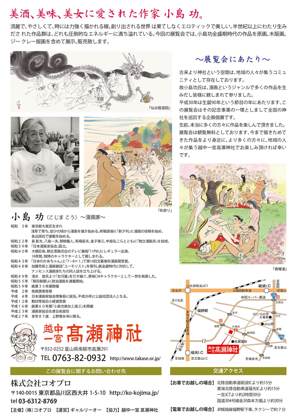 今回の展覧会では、小島功全盛期時代の作品を原画、木版画、ジークレー版画を含めて展示、販売致します。
