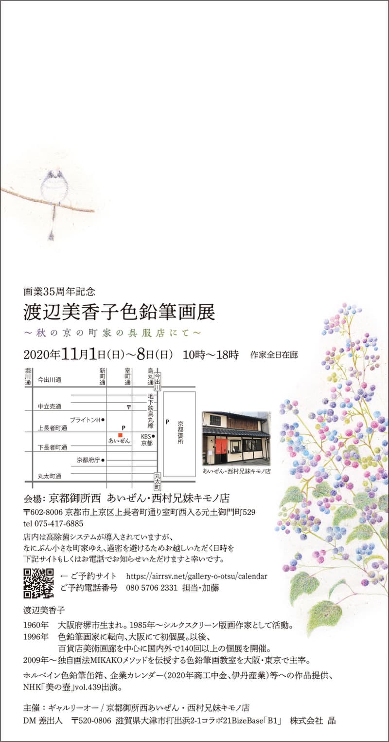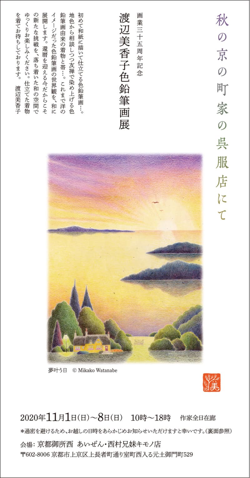 (なお、会期中に限り、渡辺美香子の色鉛筆画を図柄に選べる帯、訪問着の受注制作も承ります。)