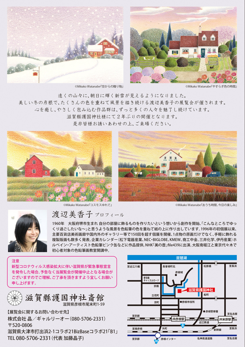 美しい冬の彦根で、たくさんの色を重ねて風景を描き続ける渡辺美香子の展覧会が催されます。