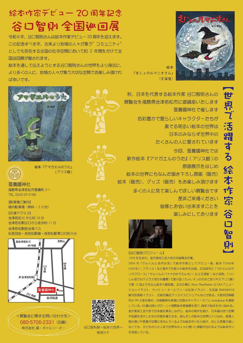 この記念すべき年、古来より地域の人々が集う”コミュニティ”と しても存在する全国の社寺空間において約2年間をかけて全国巡回 展が催されます。絵本を通して伝えようとする谷口智則さんの世界 をより身近に、より多くの人に、地域の人々が集う大切な空間でお 楽しみ頂ければ幸いです。